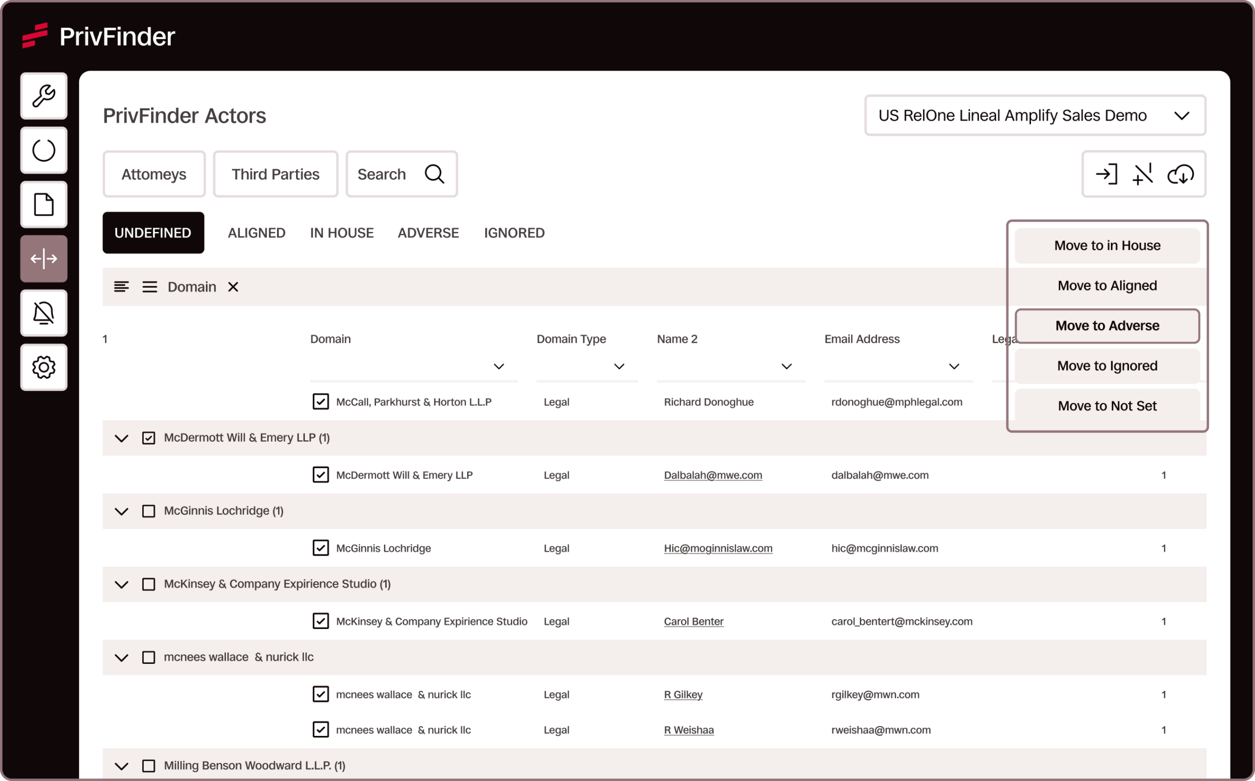 Documents ring-fenced for targeted privilege review with PrivFinder.