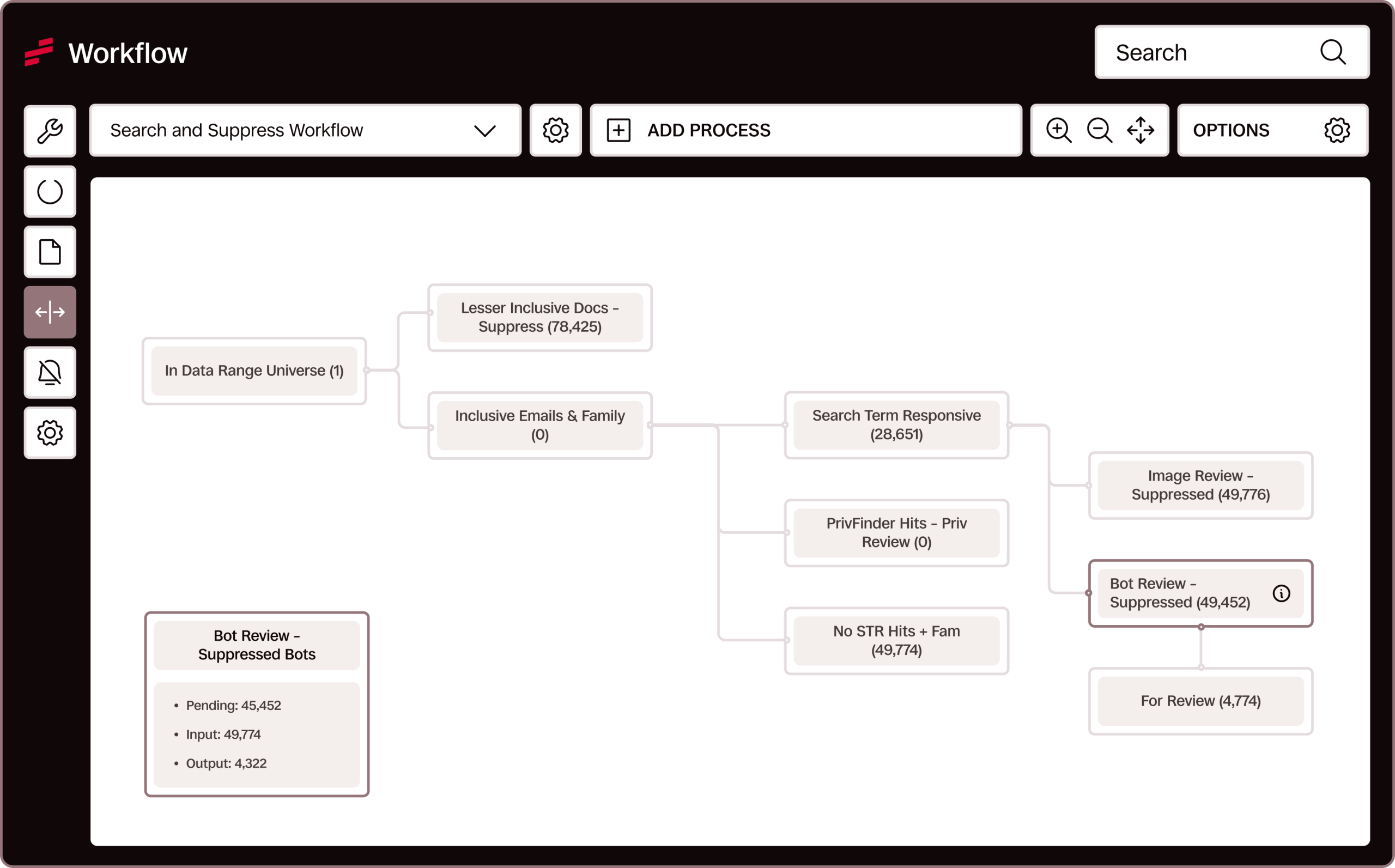 The full Amplify™ Suite of Tools cut through the volume. Email threading, BotDetector, PrivFinder, Snippets, and Lineal Images each took a layer off until the legal team had a clear path to relevant evidence.